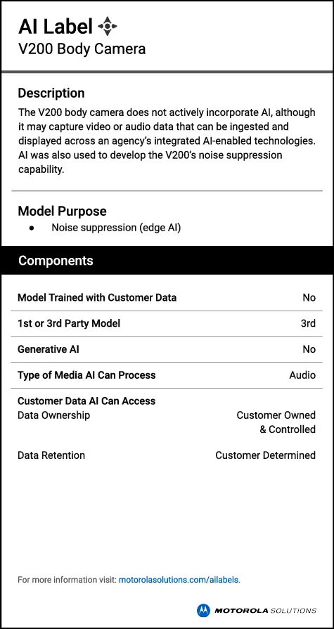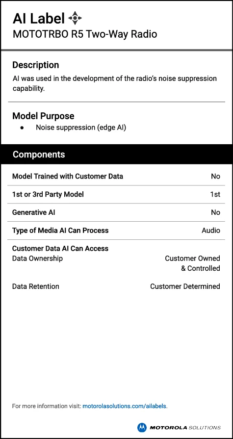 Across every industry, AI is transforming safety and efficiency by protecting people, property, and operations. From intelligent communication devices and networks to AI-powered video security—and the ability to unify voice, video, and data in a single view - these solutions strengthen every part of the Motorola Solutions safety and security ecosystem.